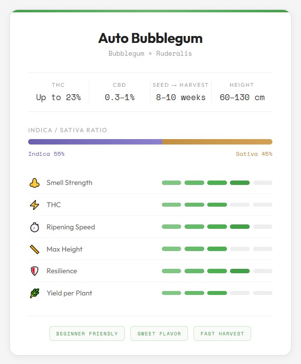 — Auto Bubblegum Cannabis Seeds